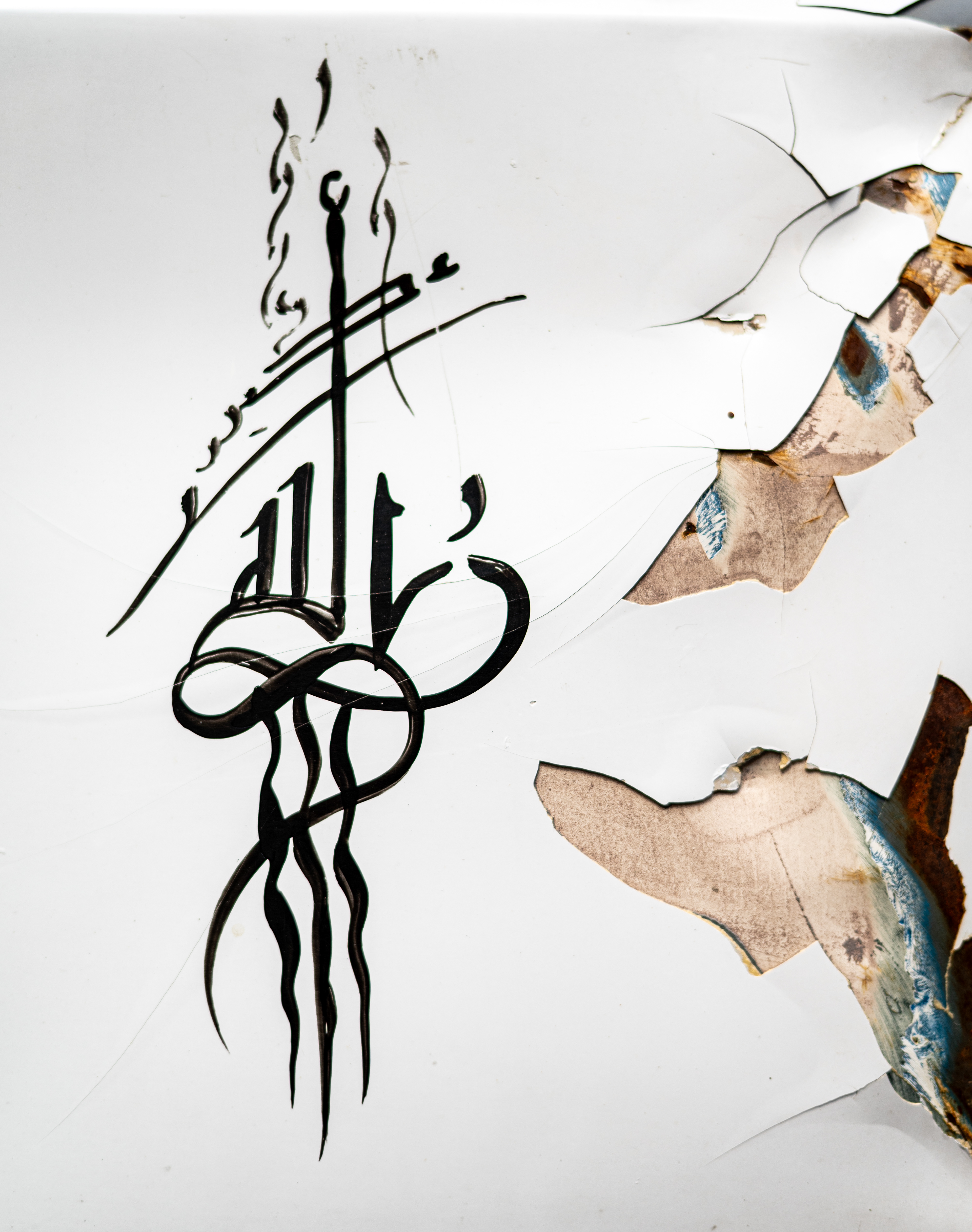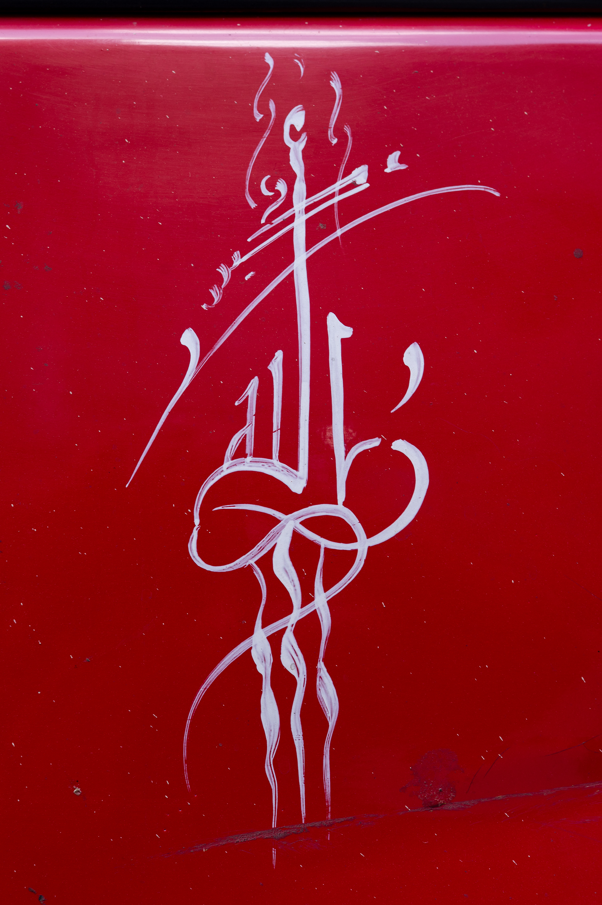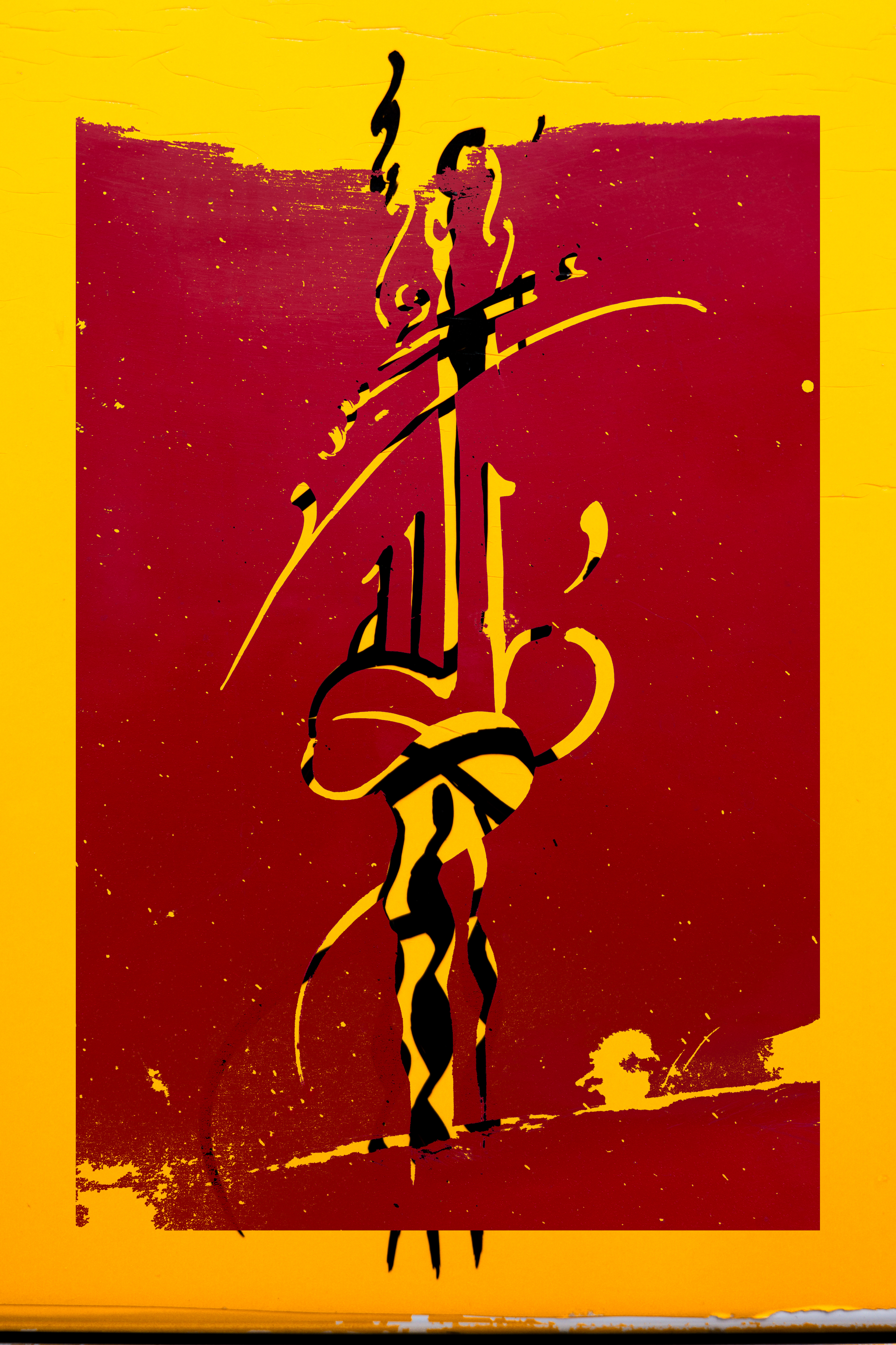 I liberate the drawings from their material context on the worn-out metal surfaces and re-present them as abstract and vibrant visual compositions within the digital space. Emphasis is placed on the aesthetic of Arabic calligraphy as an abstract form that transcends its literal meaning. The strong, saturated colors (yellow and red) highlight the contrast between the power of folk expression and the fragility of material existence.